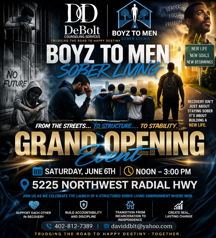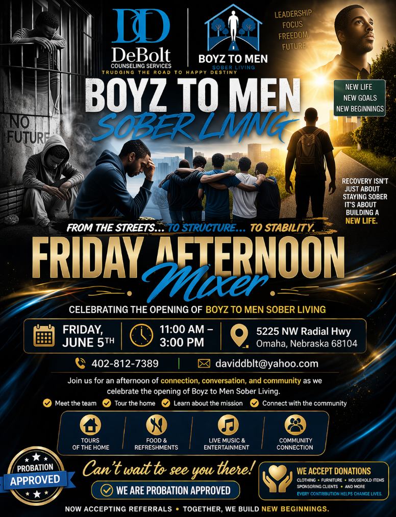 Join DeBolt Counseling Services LLC and Boyz To Men Sober Living as we celebrate the opening of a structured sober living environment built to help men rebuild their lives with accountability, discipline, and hope.